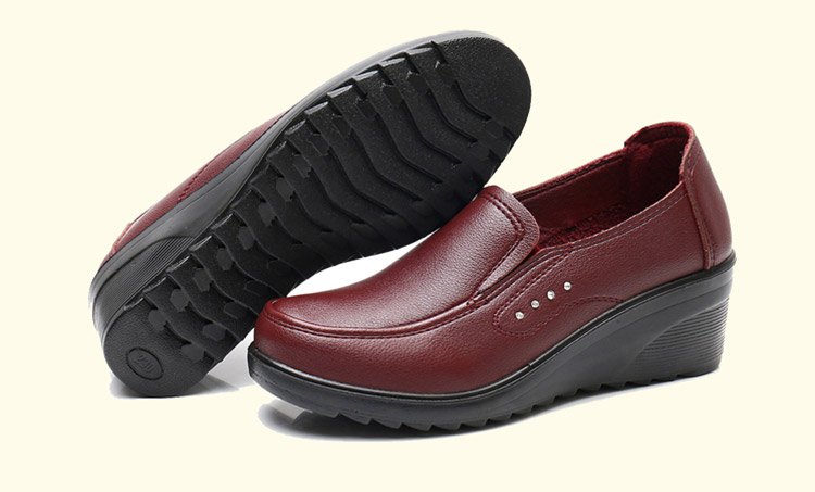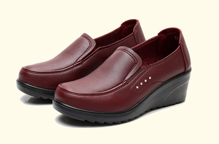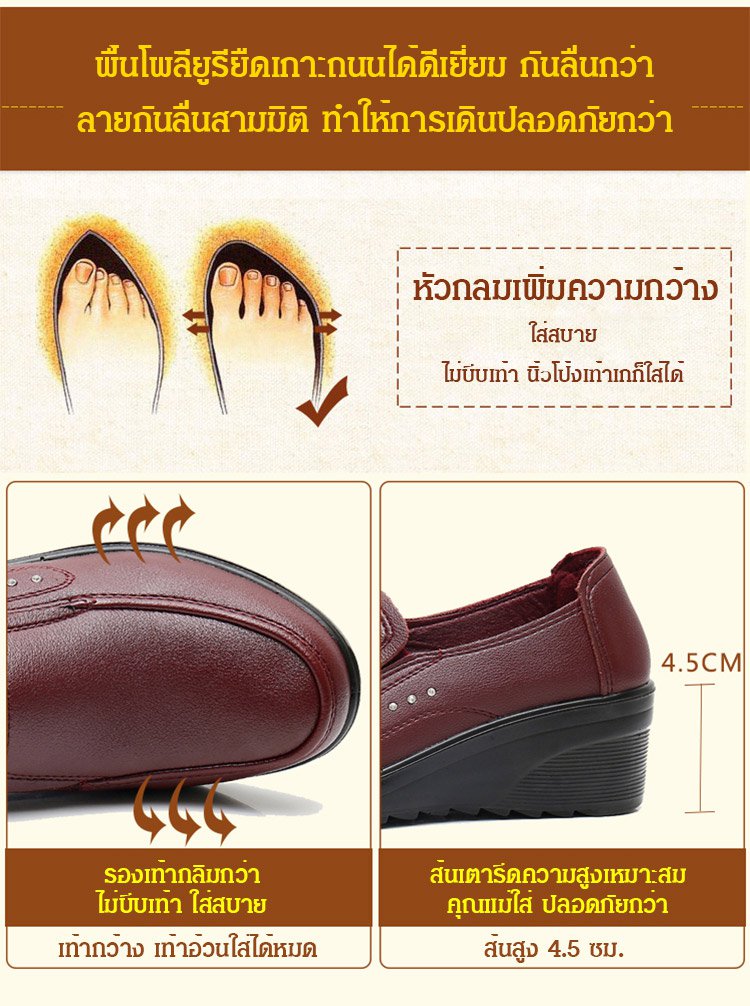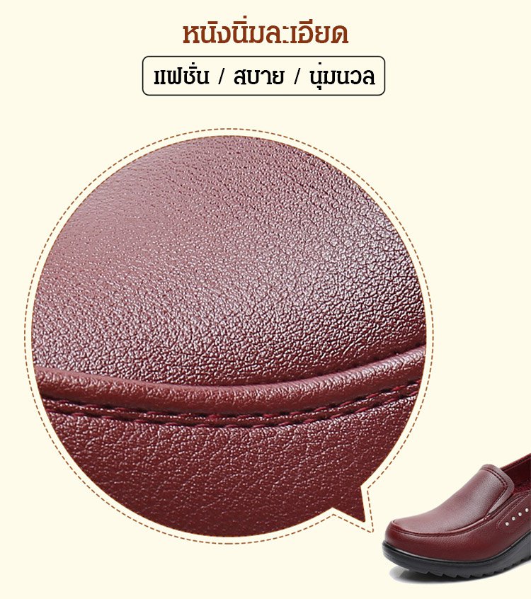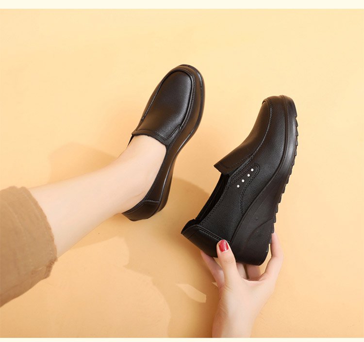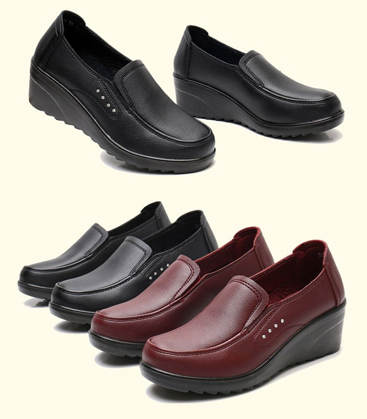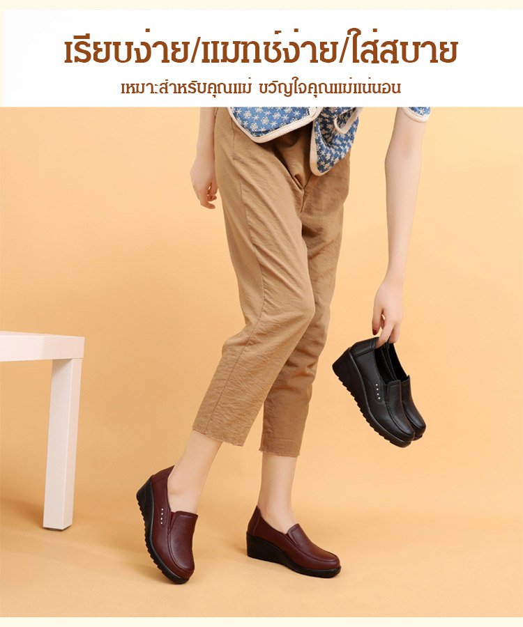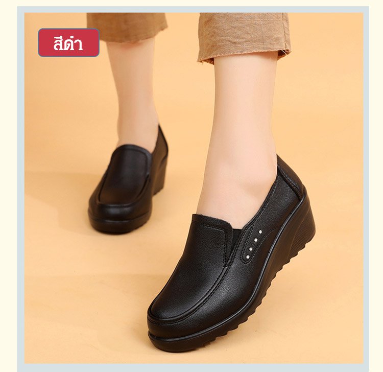 รองเท้าหนังวัวส้นเตารีดแบบสลิปออน